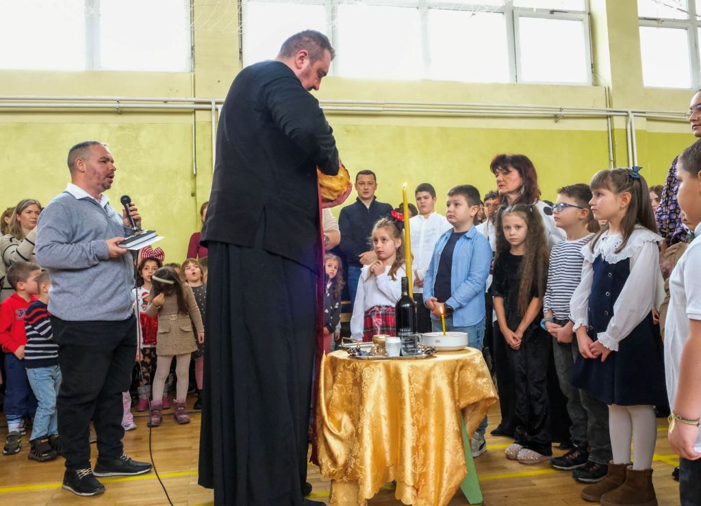 Приредба је била за сваку похвалу и у њој је учествовао већи број ученика. Након приредбе је школски парох освештао колач и са кумом славе, Золтаном Бисаком, и будућим кумовима (одељењима 1-1, 1-2 и 1-3) изломио колач и поделио кумовима. Након тога су се свима, традиционално, делиле переце.